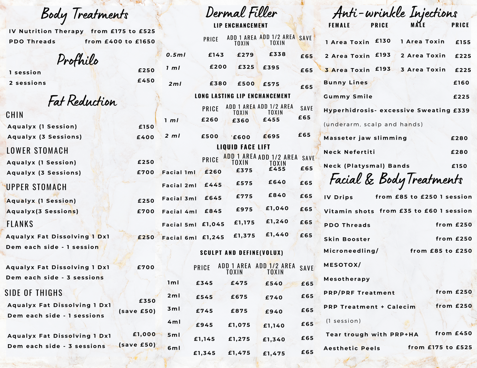 Facial 6ml - Dermal Filler £1,245 £1,375 £1,440 £250